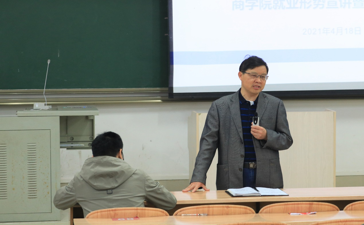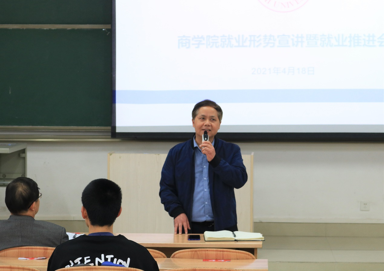 韦书觉传达了学校关于毕业生就业工作的指示精神,并结合学院存在的问题,引导毕业生转变就业观念,脚踏实地走向工作岗位。