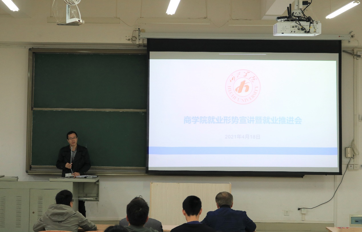 4月18日下午,必威西汉姆联官网就业形势宣讲暨就业推进会于弘毅楼2-205顺利召开。我院党委书记韦书觉,院长覃举东出席会议,会议由党委副书记龚丁海主持。