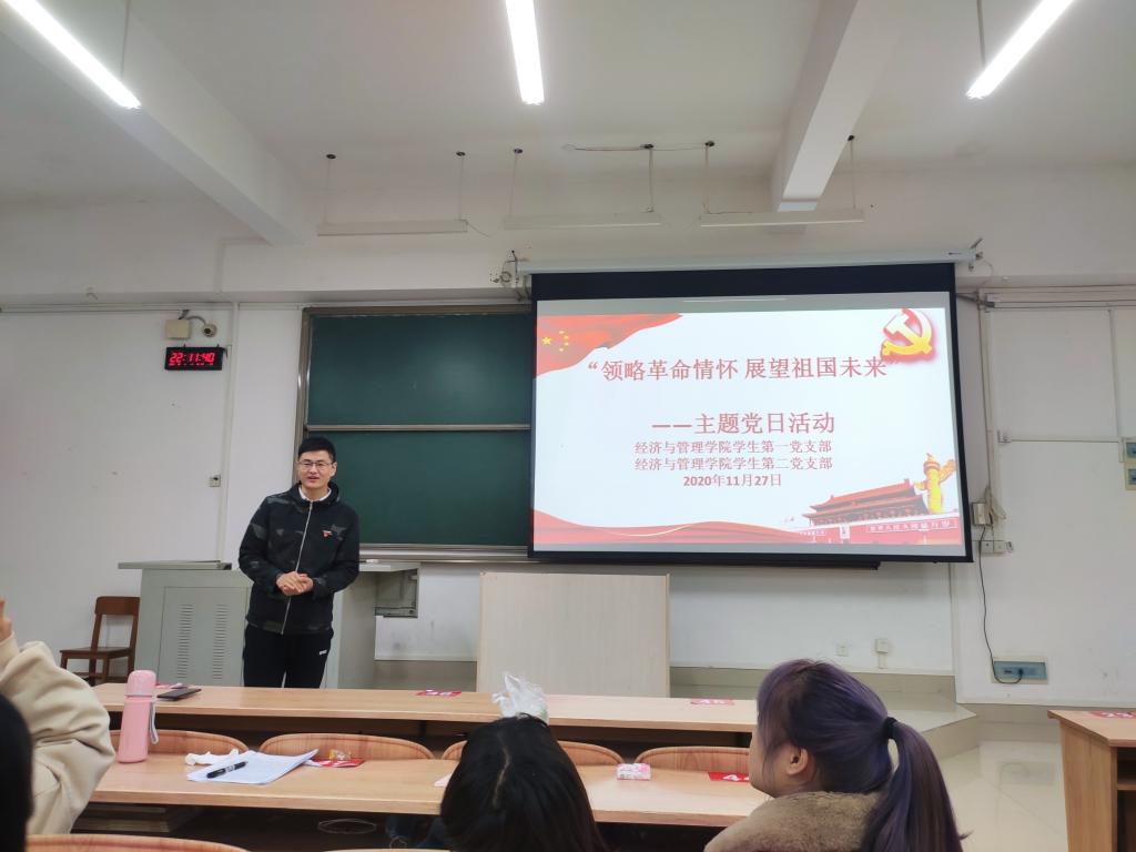 为进一步丰富党支部的组织生活,提高党支部内部凝聚力,11月29日下午,我院学生第一、第二党支部在弘毅楼2-205共同开展“领略革命情怀,展望祖国未来”主题党日活动。学生一支部书记王忠文及第一、第二支部全体同志参加此次活动,活动由陈庆强同志主持。