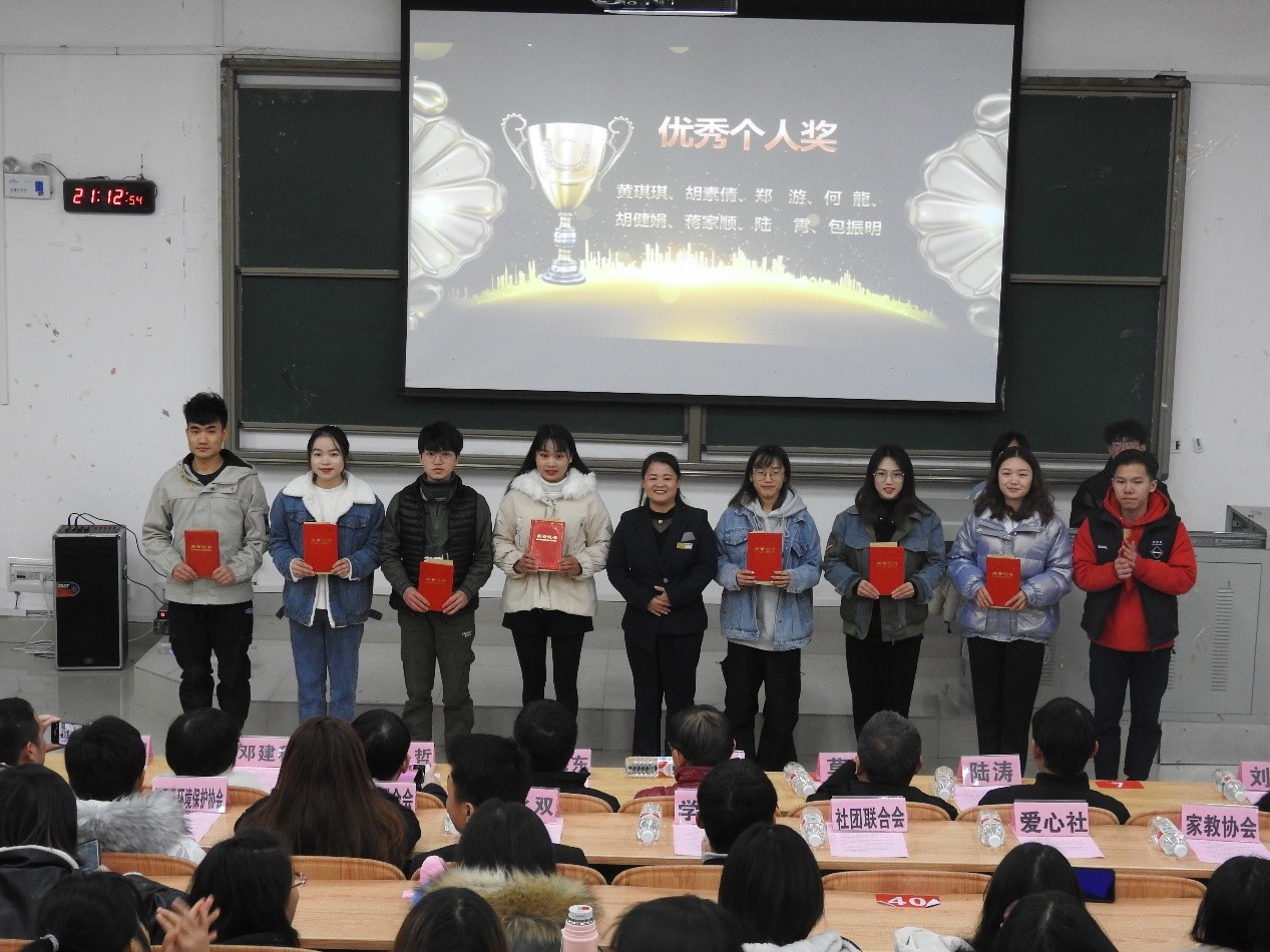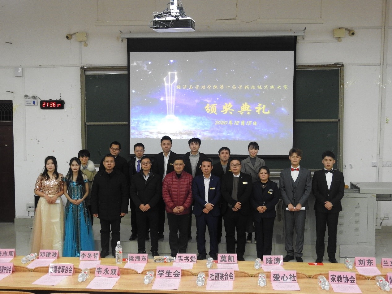 12月18日,经管学院第一届营销技能实践大赛颁奖典礼于弘毅楼1-105圆满落幕。我院党委书记韦书觉,市场营销系主任梁海东,专业教师莫凯、李冬哲、刘蕙荟等参加此次活动。校企合作单位广西河池市宜州点亮商贸有限责任公司董事长杨志周以及公司其他管理人员出席典礼。