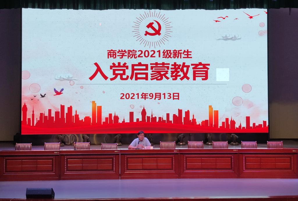 9月13日晚,必威西汉姆联官网于我校艺术楼演播厅开展2021级新生入党启蒙教育。本次会议由我院学院党委书记韦书觉主讲,我院部分专任教师、辅导员及2021级全体新生参加。