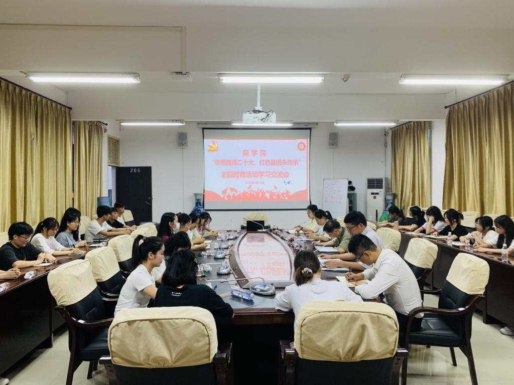 5月19日晚,必威西汉姆联官网于行政楼206开展“学思践悟二十大 红色基因永传承”主题教育学习交流会,我院党委书记韦书觉、副书记蓝振榕、专职组织员韦燕青、学生党支部书记、辅导员及学生党员、学生团委学生会干部、学生积极分子代表参加会议。会议由韦燕青主持。