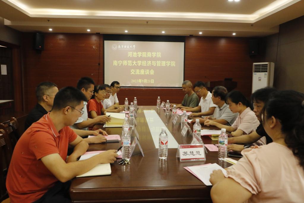 21日上午,覃举东与南宁师范大学经济与管理学院党委书记等负责领导就学院发展、专业建设、学生就业与考研等内容进行深入探讨,我院各系主任与南宁师范大学经济与管理学院各系负责人就本专业发展过程中的具体问题展开热烈讨论,为推动本专业发展提供了良好的经验做法。会后,我方参观了南宁师范大学经济与管理学院的创客空间、实训室建设并听取其在利用实训室推动学生创新创业、专业技能塑造及重大学科竞赛中的经验做法。