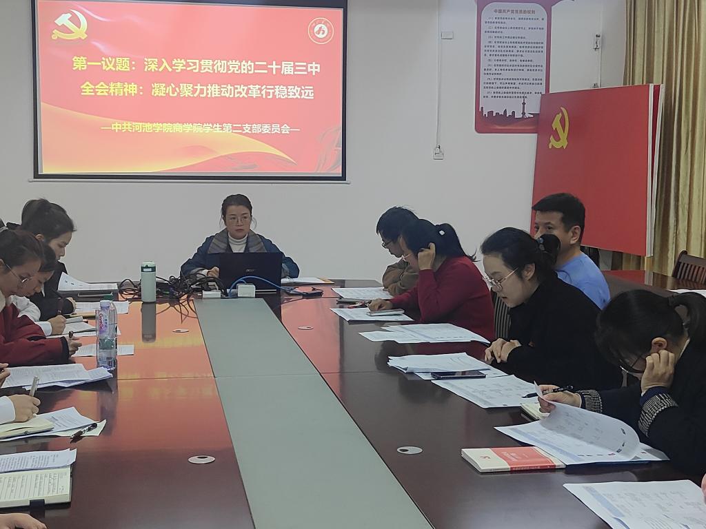 会上,韦虹羽带领全体同志学习《深入学习贯彻党的二十届三中全会精神:凝心聚力推动改革行稳致远》,李云涛分享学习心得。会议严格按照发展党员的组织程序要求进行,13名发展对象向组织汇报自身情况,各入党介绍人介绍对发展对象的培养情况并对其能否入党表明意见,支委会报告对发展对象审查的情况,与会党员分别对其进行有关党史提问。最终以现场无记名投票表决接收廖丽婷等12名同志为2024年第二批预备党员。