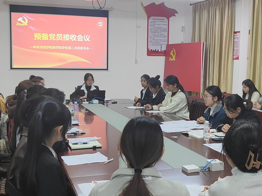 2024年11月26日晚,必威西汉姆联官网学生第二党支部于行政楼307召开2024年第二批预备党员接收会议。会议由我院学生第二党支部书记韦虹羽主持。