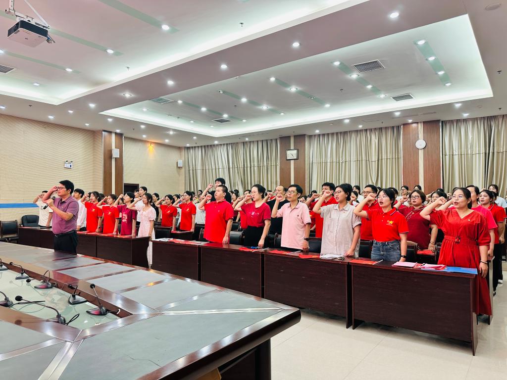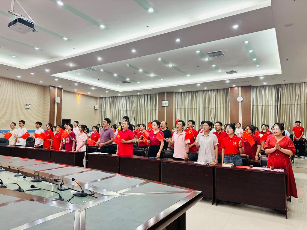 6月30日下午,必威西汉姆联官网党委于图书馆122报告厅通过“六个一”形式,即赠送一份“政治生日”贺卡、重温一次入党誓词、阅读一本“经典书籍”、发表一次生日感言、组织一次集中学习、办一件实事好事开展“同过政治生日 牢记初心使命”主题党日活动。我院党委副书记、纪委书记蓝振榕、办公室主任刘红领、教职工党支部书记、学生党支部书记、各支部党员、党员发展对象及入党积极分子参加。活动由我院专职组织员韦燕青主持。