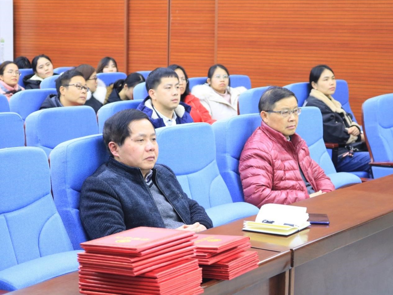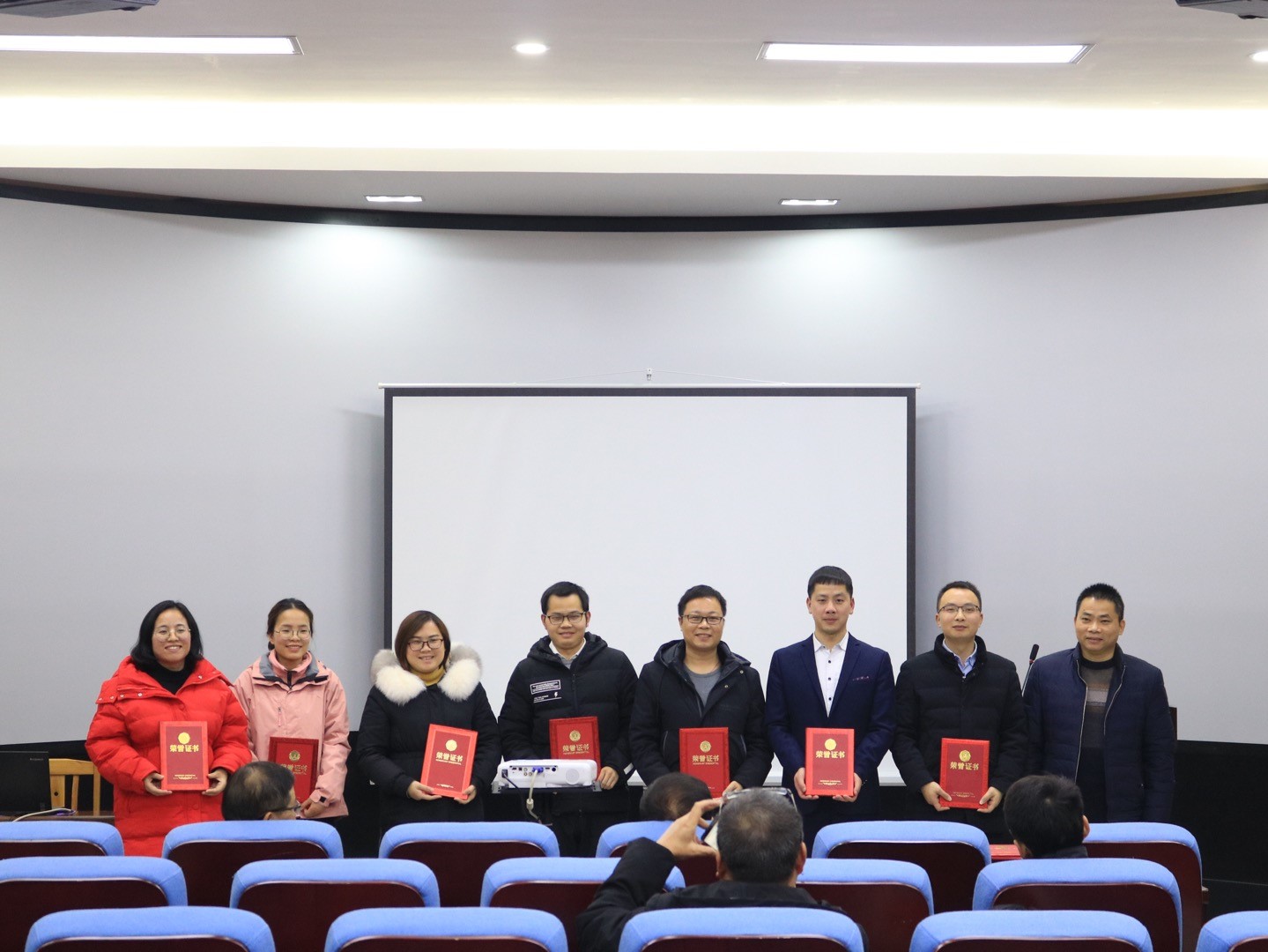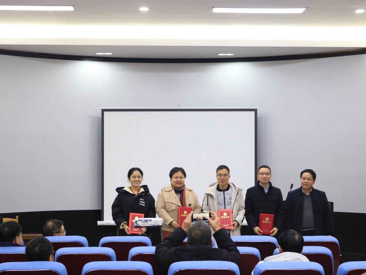 肖海燕、李政祥等九位专业教师轮流上台,分别从研究的论题、背景、方法等多方面对自己的论文进行了多维度的讲解,呈现了我院学术交流的新风貌。韦书觉、覃举东、谭玉龙、韦福巍分别为获得学术探索一、二、三等奖及优秀奖获得者颁发荣誉证书。韦福巍为本次会议致闭幕词。他向为学校和学院发展建设做出贡献的全体老师表示衷心的感谢,并希望以本次学术年会为契机,夯实学院的科研工作基础,全面提高学院科研工作水平。