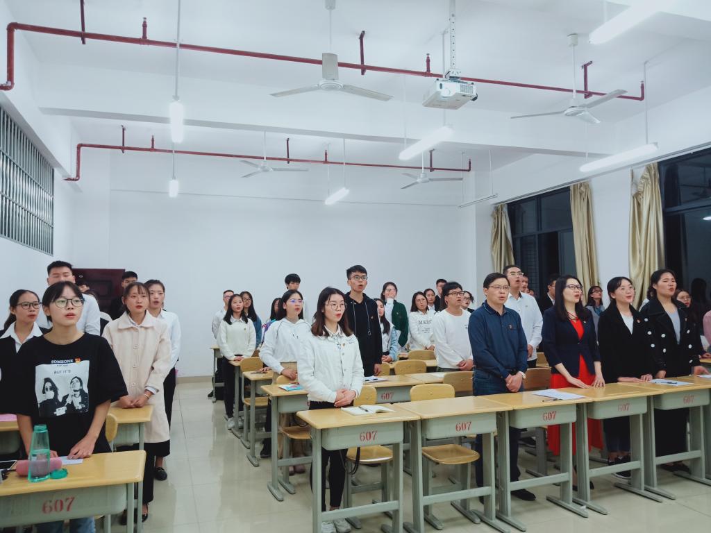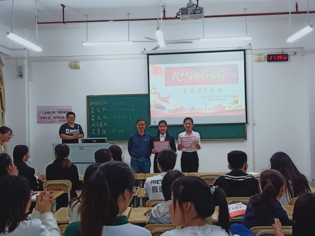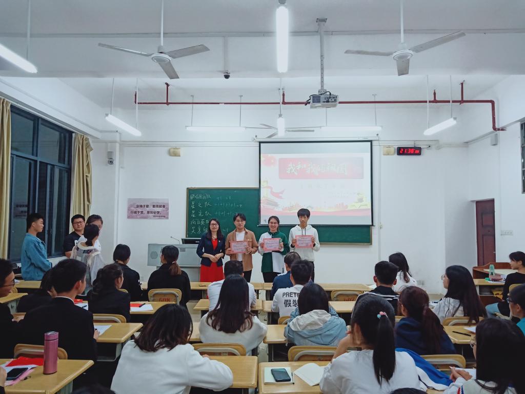 为庆祝中华人民共和国成立七十周年,10月26日晚,我院学生第一党支部在格致楼607教室召开《我和我的祖国》主题教育学习活动。参与本次活动的有我院党委书记韦书觉、学生第一党支部书记方容兰,以及在校党员、发展对象和入党积极分子。