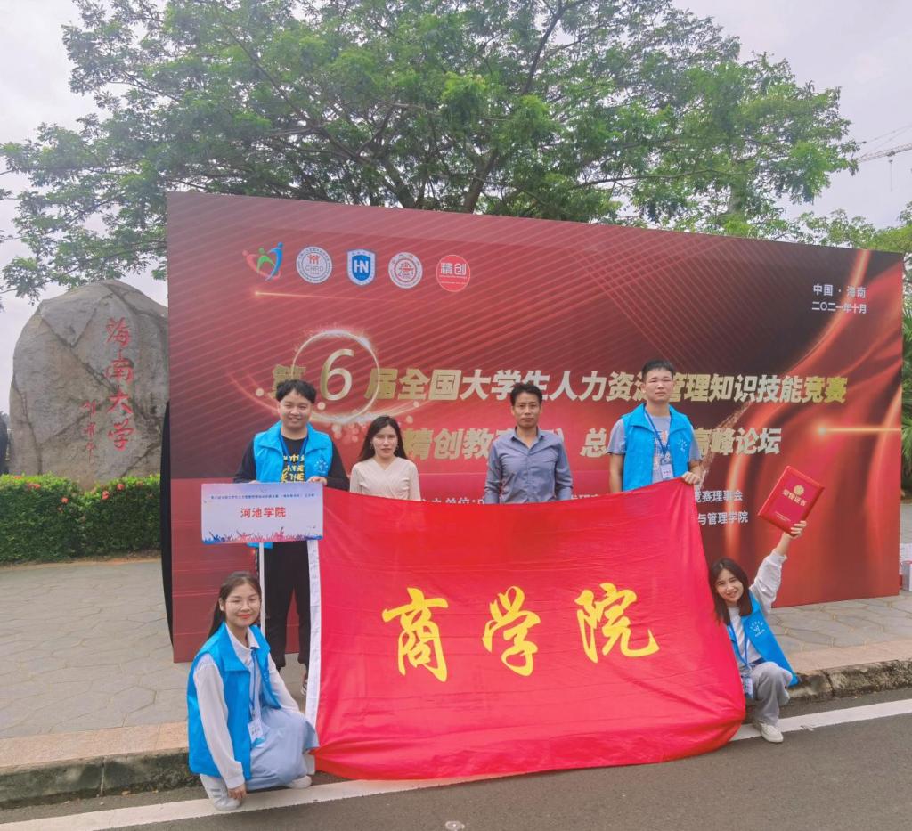 2021年10月23-24日,由中国人力资源开发研究会主办的第六届全国大学生人力资源管理知识技能竞赛总决赛于海南大学隆重举行。我校代表队在必威西汉姆联官网人力资源管理系主任刘智、教学督导赵路共同指导及带领下前往海南大学参赛。经过激烈的角逐,以人力资源管理专业2018级钟璧霞、梁佳伟、杨良燕、王超四人组成的河池学院代表队最终荣获总决赛二等奖和团队“最佳风采奖”。
