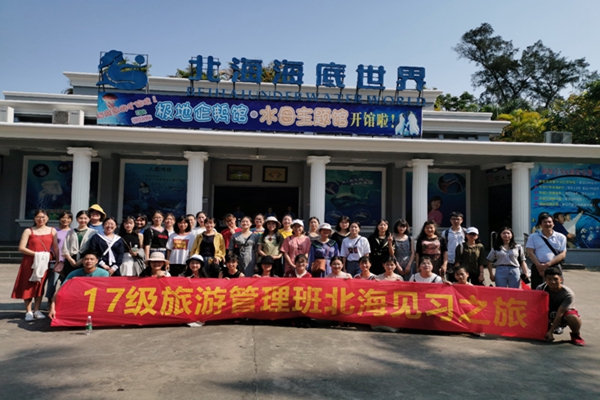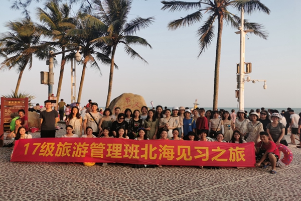 为完成专业的教学计划,结合专业特色,提高班级同学的实践能力和学习能力,在我院旅游管理系系主任杨辉强老师,专业老师罗茹老师和温庆林老师的带领下,17旅游管理本科班的全体同学于2019年5月18日上午在逸夫楼乘坐旅游大巴前往北海市进行为期两天的见习。此次见习共设计了三个旅游景点;一是素有“天下第一滩”之称的北海银滩,二是北海海底世界、三是北海老街。19日下午乘坐大巴返回学校。
