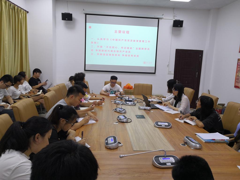 会议由支部书记方容兰同志主持召开,首先带领全体党员同志认真学习《中国共产党党员教育管理工作条例》,强调党员要坚持党的政治建设为统领,践行党员新思想、适应新时代、展现新作为。同时开展“不忘初心、牢记使命”主题的教育活动,教育全体党员要争做新时代合格共产党员。其次为了让学生党员积极适应角色变化,会议进行了交流座谈会,毕业生党员与其他党员就学习、工作和生活方面的经历进行交流,毕业生党员同志分享选调生、考研和工作的经历。