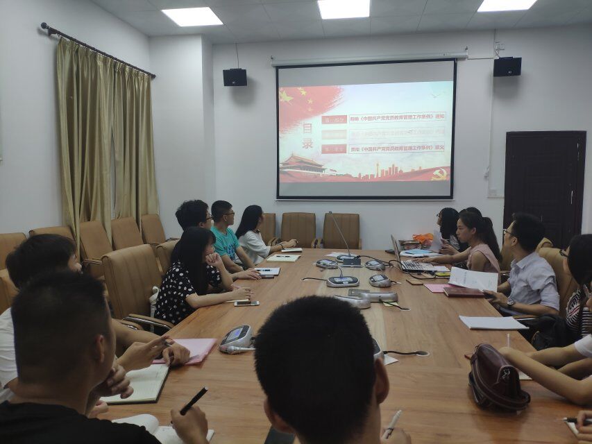 本次会议分为三个部分进行。首先,梁英同志强调了学校党委关于学习领会《条例》通知的精神,进而学习了《条例》的内容和意义。其次,我们还开展了支部党员交流会,由毕业生党员吴大展同志和张许燕同志分享实习的经历和学习感悟以及事业单位考试等面试的注意事项,并告诫新党员同志要少一点抱怨,多点付出。最后,由支部书记黄挺龙老师分享生活学习以及工作的经历,并告诉党员同志们要有信仰、坚持努力完成每一个目标、积极主动付出,同时要搞好支部内部建设和不断学习党规党章等。