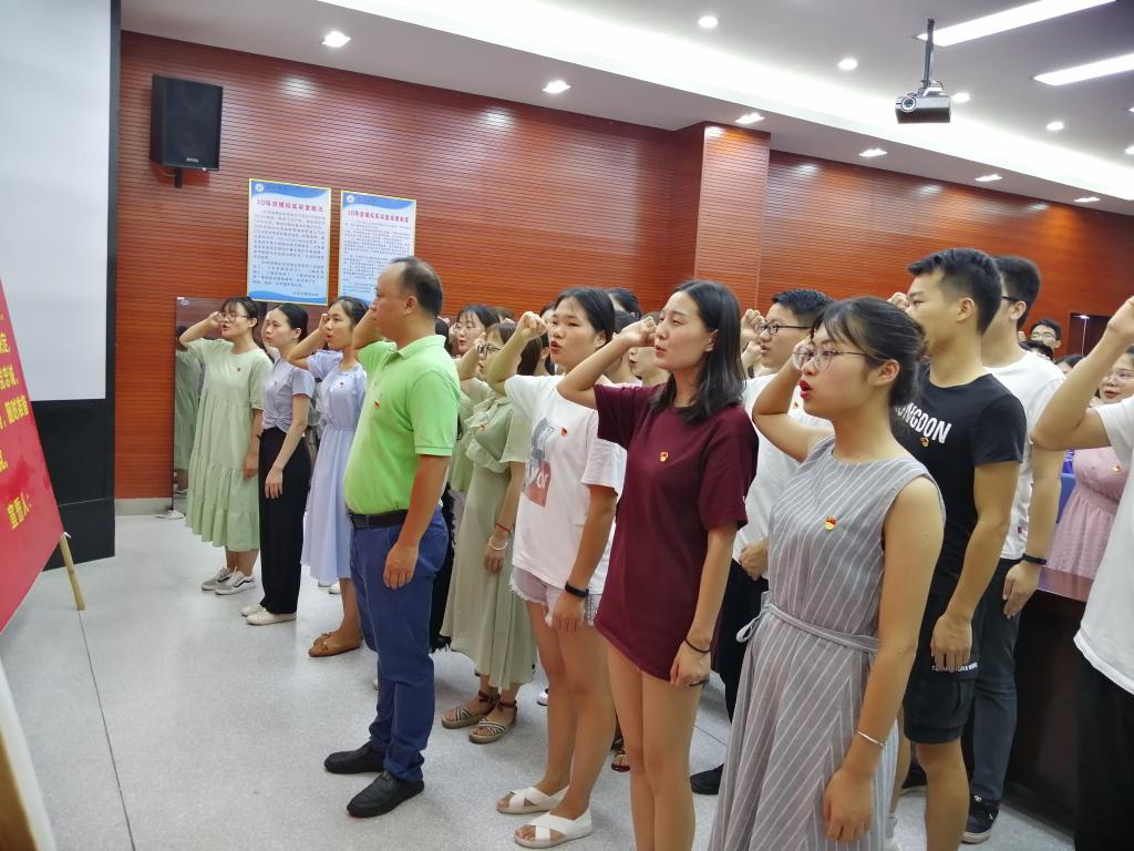 为庆祝中国共产党成立98周年,7月2日,我院庆祝建党98周年暨新党员入党宣誓大会在弘毅楼3-504会议室召开。我院党委书记韦书觉,党委副书记龚丁海,各支部书记、辅导员出席会议,三个学生党支部全体党员参会。会议由党委副书记龚丁海同志主持。