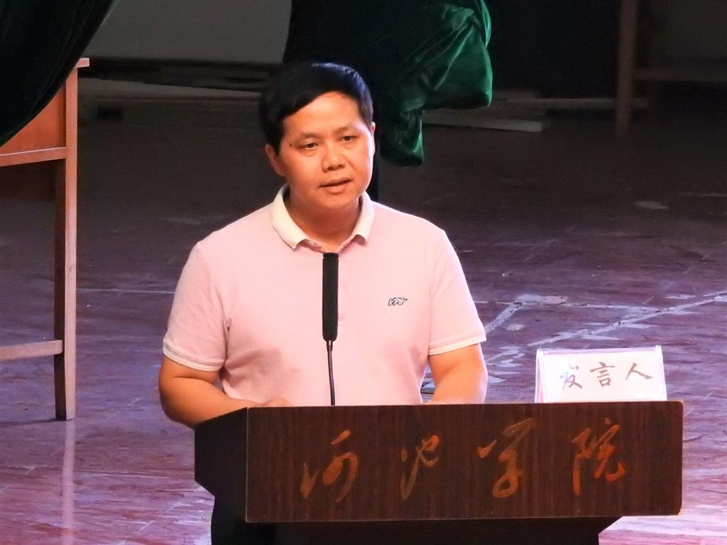 9月25日下午,我院于艺术楼表演厅成功举行2019级开学典礼暨专业教育启动仪式。出席本次会议的主要领导有院长覃举东、党委书记韦书觉、党委副书记龚丁海、副院长谭玉龙、副院长韦福巍、办公室主任刘红领、分团委书记李云涛以及各系主任、副主任、各年级辅导员、新生班主任,以及我院2019级新生。开学典礼由刘红领主持。