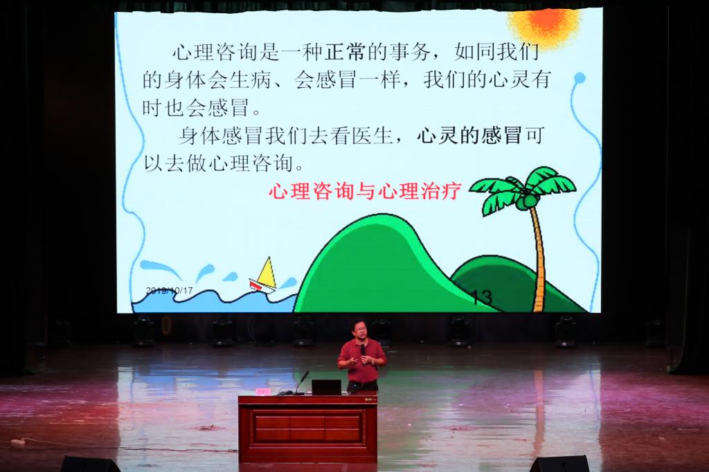 10月17日晚,我院在艺术楼演播厅为2019级新生开展“传递正能量,关注‘心’健康”的心理健康教育讲座,本次讲座邀请了尹晨祖副教授为2019级全体新生授课,由我院团委书记李云涛担任主持人。