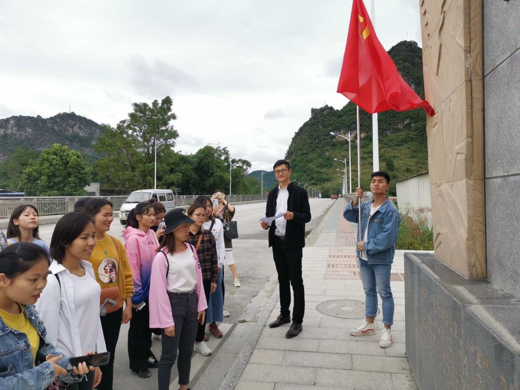 1937年日本侵华战争后,国立浙江大学师生在时任校长竺可桢先生的率领下,怀着“教育救国,科学兴邦”理想,踏上漫漫西迁路,途中抵达宜山办学1年多。在此期间,浙大诞生了“求是”校训和《大不自多》校歌,涌现了一大批优秀人物:“两弹一星”功勋科学家程开甲先生、中国科学院院士苏步青、中国现代遗传学奠基人谈家桢等。站在“求是桥”上,党员同志感触颇深,一方面感慨西迁历史的不易,另一方面是对程开甲先生的“求是精神”及其贡献表示倾佩。随后,党员同志到达浙大迁广场,瞻仰了竺可桢先生的铜像,接着游览了而迁走廊,随后朗诵了《大不自多》校歌。
