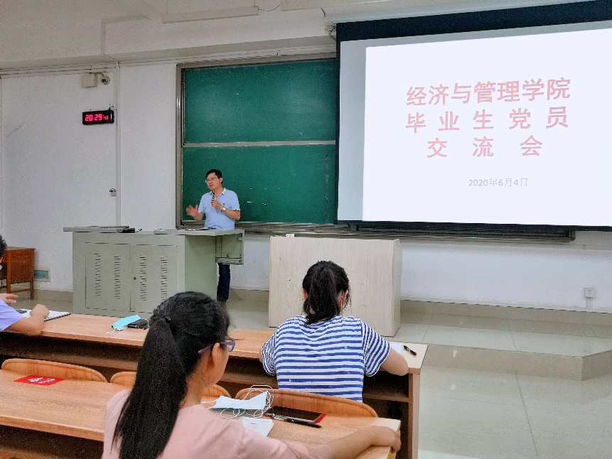 值此毕业之际,经济与管理学院学生党支部毕业生党员交流会于6月4日晚,在弘毅楼二区403教室召开。我院党委书记韦书觉、党委副书记、纪委书记龚丁海、团委书记李云涛出席会议,学生党支部全体党员参会。会议由龚丁海同志主持。