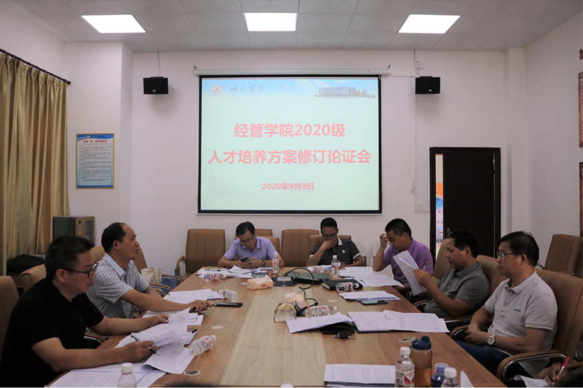 为更科学、合理的制定我院各专业人才培养方案,推进我院应用型本科人才培养再上新台阶。9月9日上午,2020级本科人才培养方案论证会在弘毅楼2-208会议室举行。出席会议的有教务处副处长韦晖、历史与社会学院院长谢铭、我院院长覃举东、副院长谭玉龙、韦福巍、副书记龚丁海及各教研室主任。会议由我院院长覃举东主持。