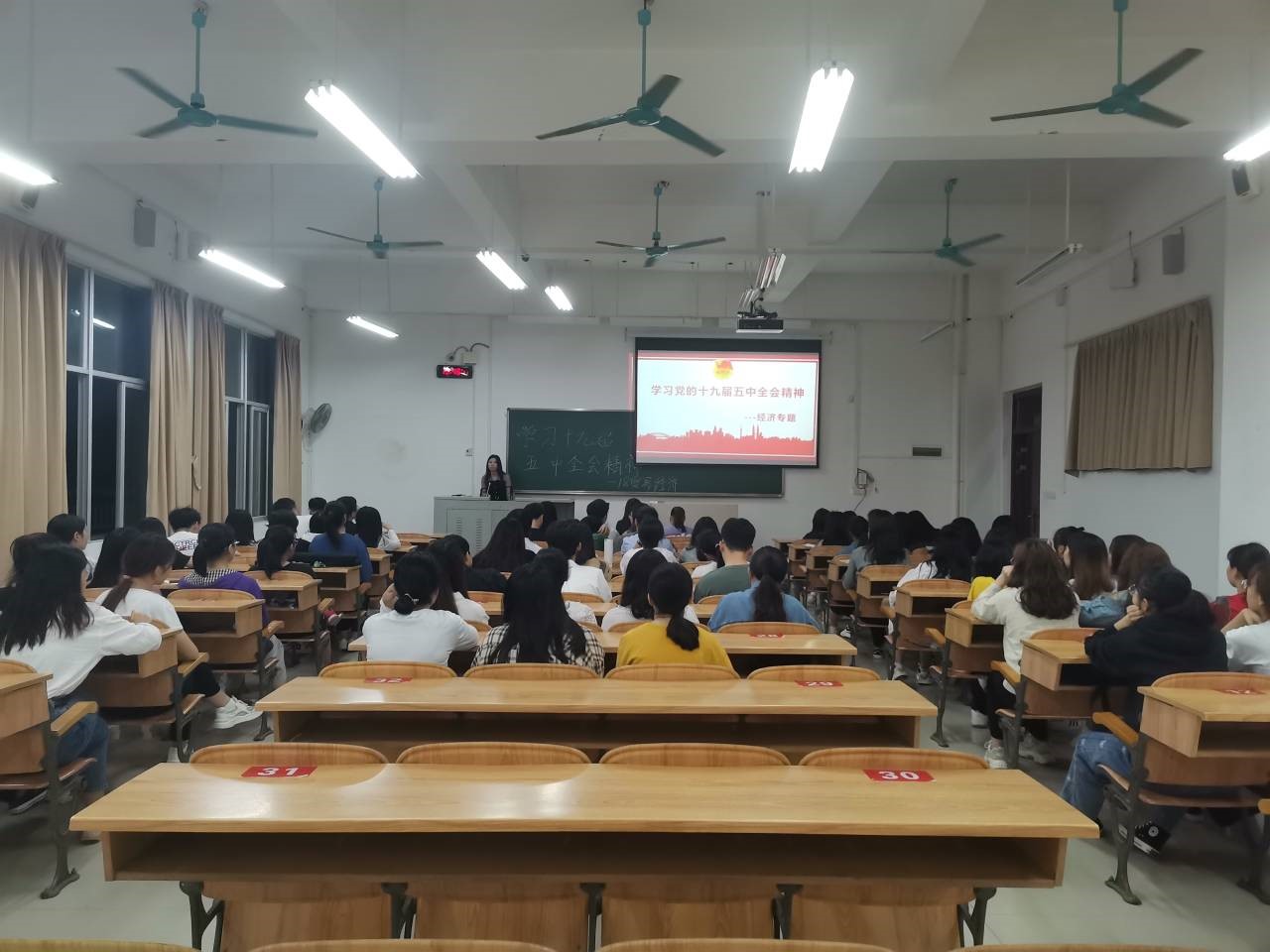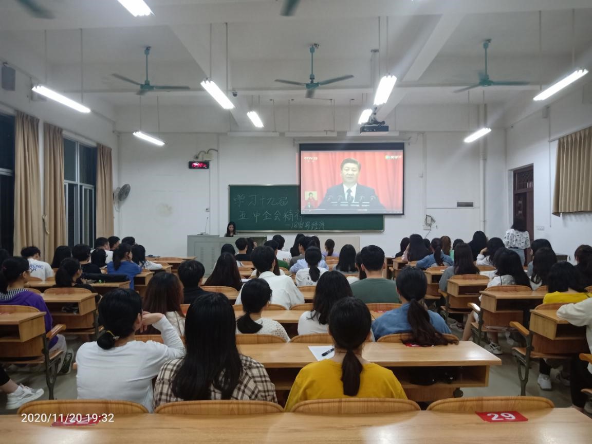 11月20日晚,18级贸易经济专业在班主任王威峰老师指导下于弘毅楼3-302开展关于“学习党的十九届五中全会精神”的主题班会,会议由团支书施燕梅主持。