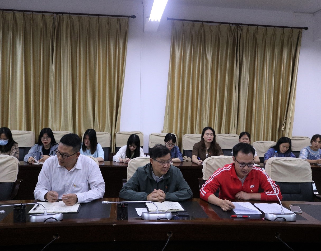 会议中,九位优秀党员毕业生代表轮流发言,他们从学习生活、思想成长、社会实践等方面分享了自己的收获。蓝振榕根据每位党员毕业生的发言内容,提出相应的建议,肯定他们的学习成果,并从“想到、说到、做到”三方面鼓励他们积极面对未来的人生。韦书觉从加强政治修养、努力工作、锤炼党性不忘初心、加强与师生的联系等四个方面,对毕业生们做出建议,祝福毕业生们走好今后的人生道路。黄挺龙则针对毕业生党员组织关系转接的规定进行说明。