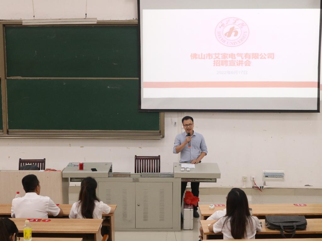 6月17日至18日,必威西汉姆联官网特邀佛山市艾家电气有限公司相关负责人到我院开展宣讲会、面试等一系列企业进校园活动。我院党委副书记蓝振榕、辅导员黄挺龙及全体18级毕业生参加了此项活动。