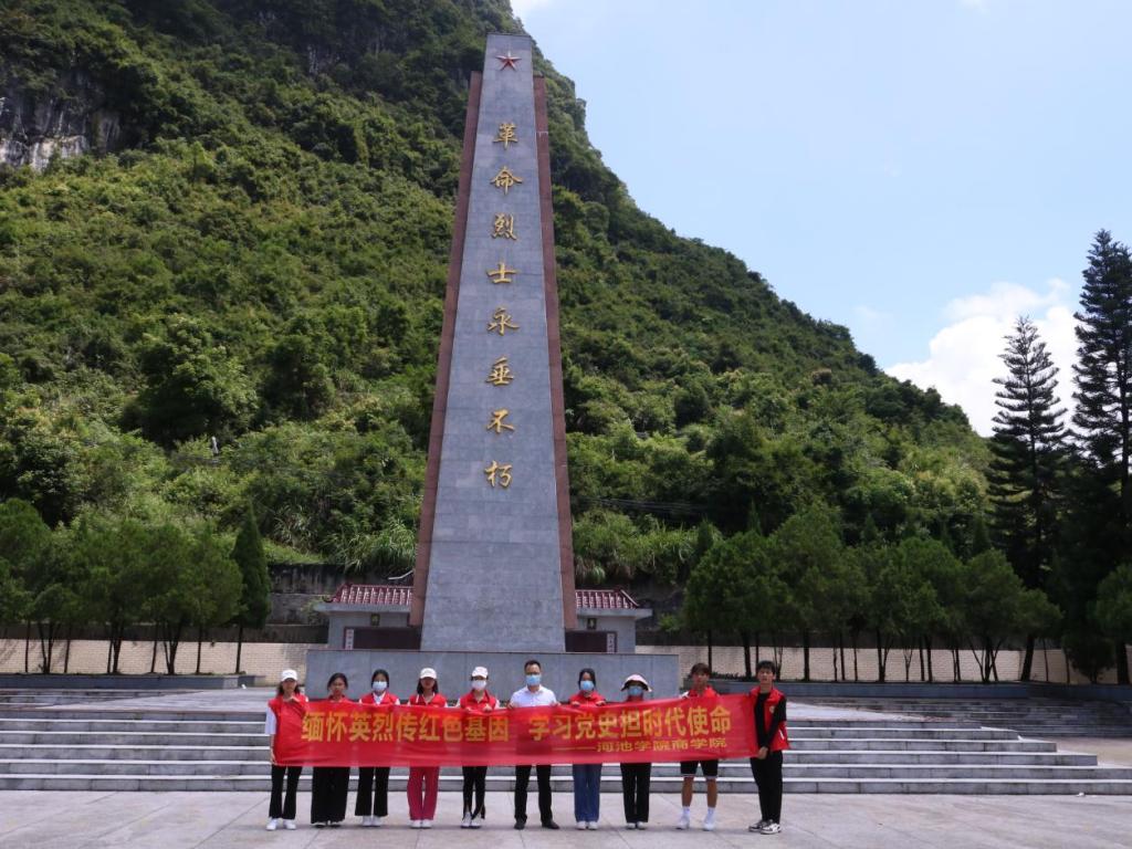 活动分为三个部分,参观河池市罗城仫佬族自治县成龙湖公园罗城仫佬族博物馆、参观韦一平烈士纪念馆及瞻仰烈士陵园。在此过程中,同学们学习当地文化、风土人情,走近红色历史,深入了解时代英雄,并通过问卷调查的方式对罗城红色旅游和农产品市场销售情况进行调研。