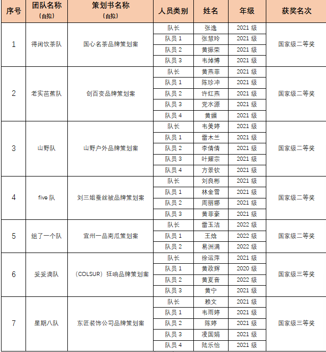 2024年全国高校商业精英挑战赛品牌策划竞赛全国总决赛暨(新加坡)全球品牌策划大赛中国地区选拔赛于2024年6月2日顺利结束。必威西汉姆联官网市场营销系“得闲饮茶队”、“山野队”、“five小队”、“老实芭蕉分析队”、“组了一个队”、“星期八队”、“妥妥滴队”共7支队伍,在我院市场营销教研室主任刘蕙荟、市场营销专任教师莫凯、梁海东、黄瑞吉、杨穗、李冬哲、邓建秋、陆涛的指导下,取得国家级二等奖5项、国家级三等奖2项的优异成绩。获奖名单请参见下表。