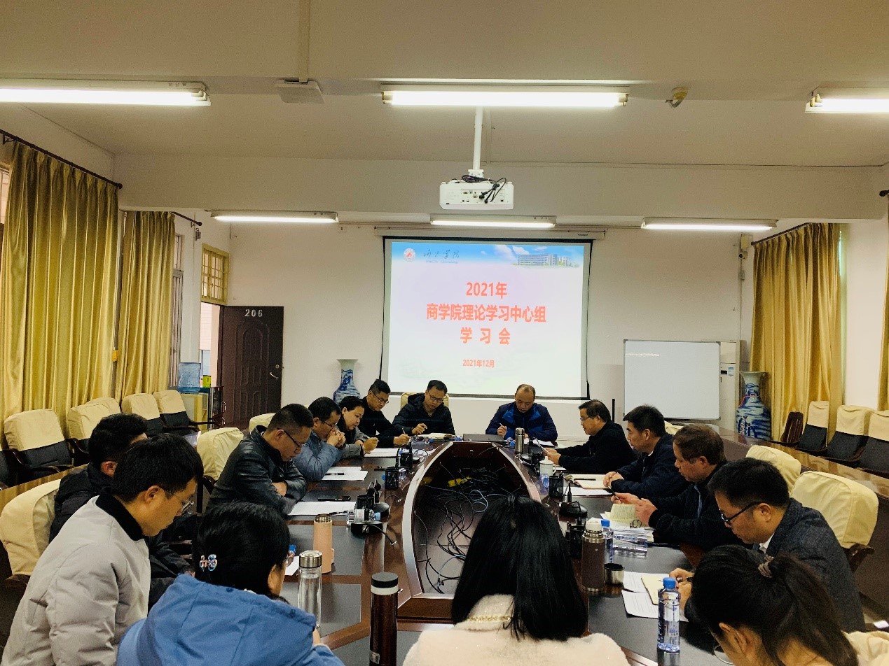12月24日上午,必威西汉姆联官网于行政楼206召开理论学习中心组学习会。会议围绕“深入学习党的十九届六中全会和自治区第十二次党代会精神,深化必威西汉姆联官网课程思政高质量发展,全面推动服务地方经济社会的能力和水平”主题进行学习研讨。我校党委常委、纪委书记黄小敬到会巡听并作点评。我院党委书记韦书觉,院长覃举东,党委副书记、纪委书记龚丁海,副院长韦福巍、肖海燕以及学院各系主任和支部书记参会,会议由韦书觉主持。