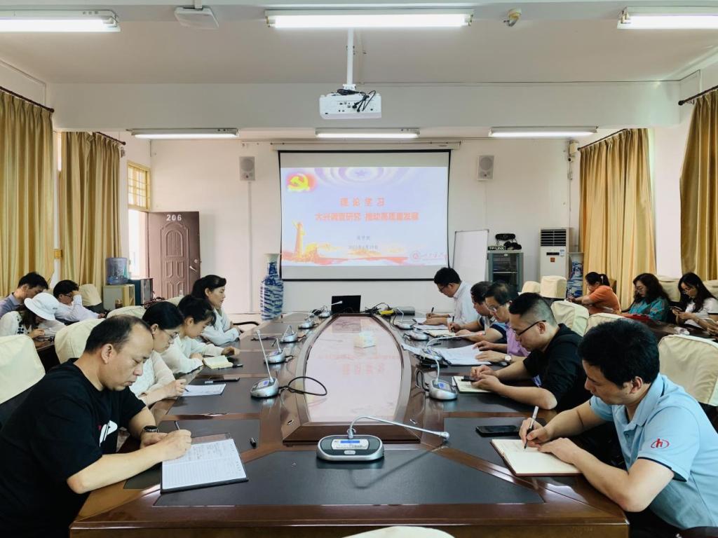 4月19日下午,我院于行政楼206召开“大兴调查研究 推动高质量发展”专题学习会。我院全体教职工参加会议,会议由我院党委书记韦书觉主持并作专题发言。