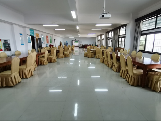 中餐厅实训室于2015年8月建成,位于东区食堂四楼,是东区食堂的一部分,使用面积250平方米。教学设备总价值16万余元。拥有联想电脑主机1台,1套多媒体影声设备,包括1台投影机,1台功放与1台无线话筒,同时摆放了十多张饭桌及椅子,配置了一百多套餐饮碗具及杯具。学生可在该实训室里学习餐饮服务中的宴会摆台,斟酒,餐巾折花,上菜和分菜等。可供多名学生同时学习中餐服务的基本技能,为将来就业打下坚实的基础。